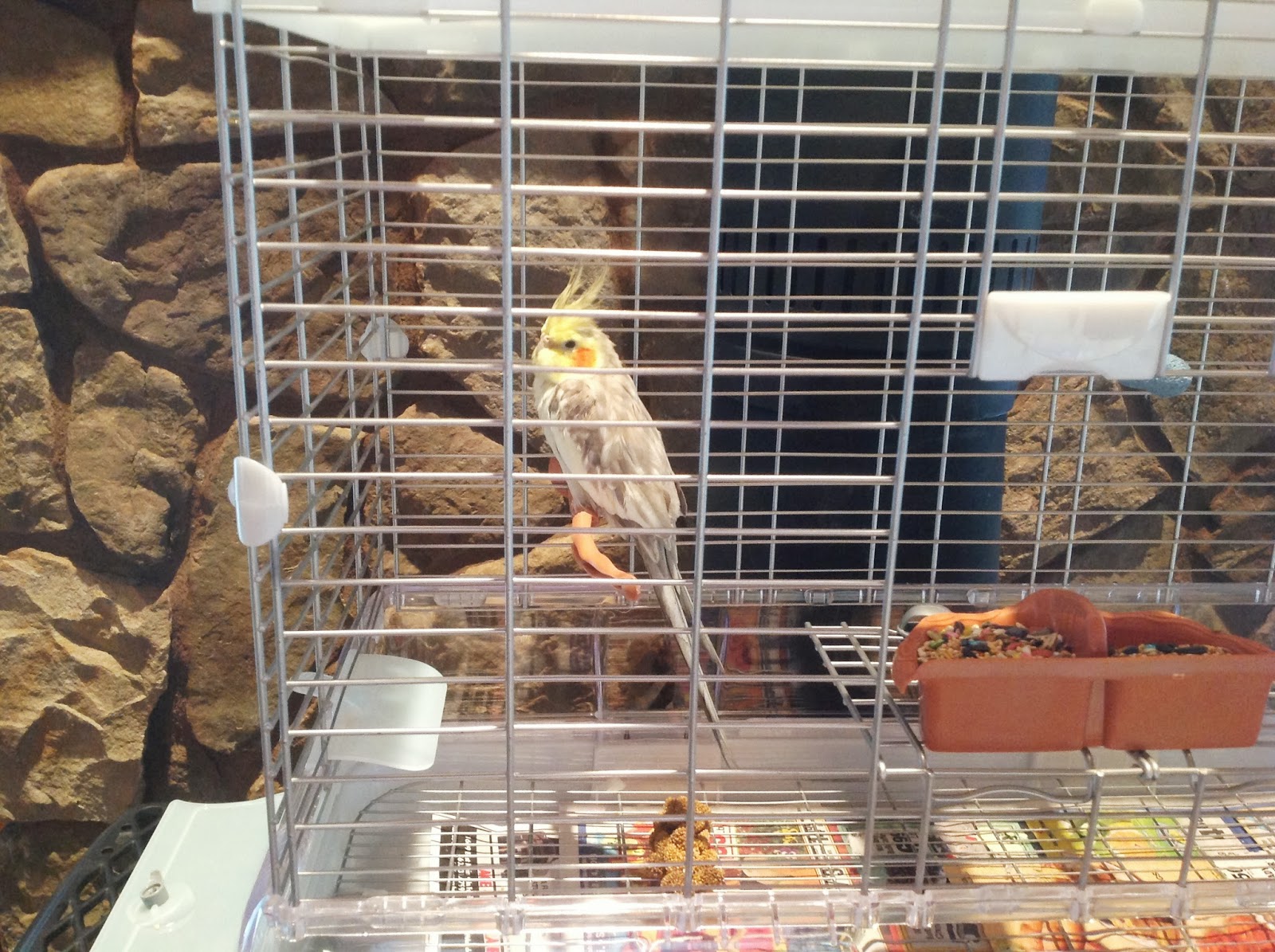 A 2 year old cockatiel and the newest addition to the family. Skittish and a bit noisy, likes to imitate smoke alarms rather than songs, but a good traveler in our RV, hoping that trait translates to a boat... Can you get a gambled bird cage? Hmmm.